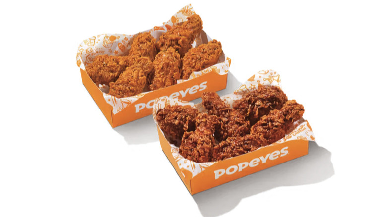 Popeyes keeps its menu relatively inexpensive when it comes to a la carte items, but there's one single order that is higher than the rest. The 12-piece Spicy Bone-In Wings are marinated in a blend of ghost pepper spices before being breaded and fried. You've got a choice of two dipping sauces with the wings, and you can choose from its Buttermilk Ranch Sauce, BBQ Sauce, Bayou Buffalo Sauce, Blackened Ranch Sauce, Mardi Gras Mustard, Sweet Heat Sauce, Wild Honey Mustard, cocktail sauce, or tartar sauce.