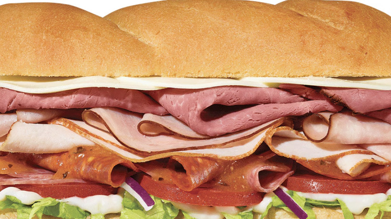 However, there is one footlong sub at Subway that shockingly beats them all when it comes to price. The Beast is a truly frighteningly huge sandwich, packed with a half pound of meats of all kinds (pepperoni, salami, turkey, ham, and roast beef), double provolone cheese, lettuce, tomatoes, onions, mayonnaise, and Subway's MVP Vinaigrette. Depending on where you order it, The Beast will cost you $15 to over $18. That's right -– you can order a sandwich at Subway for nearly $20, and it's not even the meal version; it's just the sandwich. That said, if you or a loved one has recently ordered a $20 sandwich at literally Subway, you may ... not ... be entitled to compensation. Sorry.