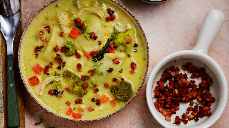 When it comes to comfort food, nothing beats a steaming bowl of soup that's ready to heal whatever ails your body or spirit. While tortellini are an easy, classic addition to add heft to your soup, it's time to give pierogi their moment in the spotlight. These delightful dumplings, typically filled with creamy mashed potatoes, savory cheese, or sometimes ground meat, can elevate any soup into a filling, satisfying meal.