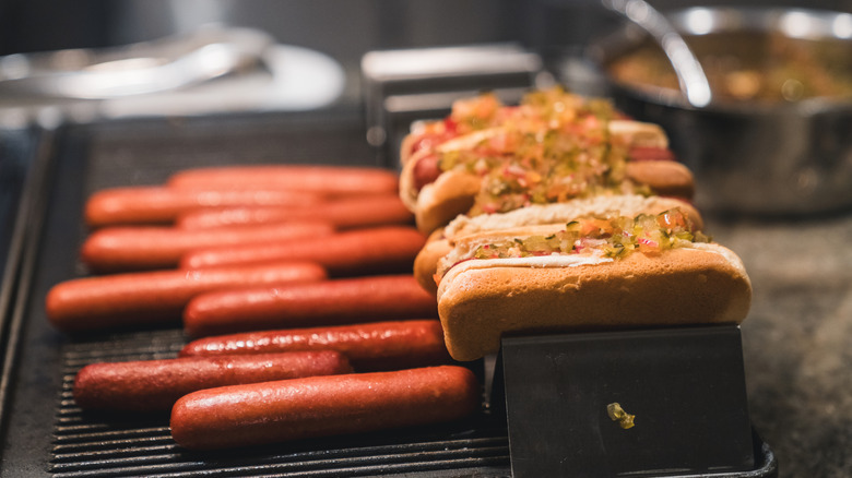 And of course, you could always choose a more flavorful cooking style. For its taste test, Chowhound roasted the hot dogs at 450 degrees Fahrenheit for 15 minutes, purposefully foregoing a cooking style that might mask the unadulterated taste of the franks. Grilling will leave your franks with a nice toothsome char — but you could also pan fry or leave them in the oven long enough that they acquire a more developed color, be your preferred hot dog golden-brown or black and crispy. Applegate itself recommends either grilling its hot dogs or simmering them in boiling water for five minutes.