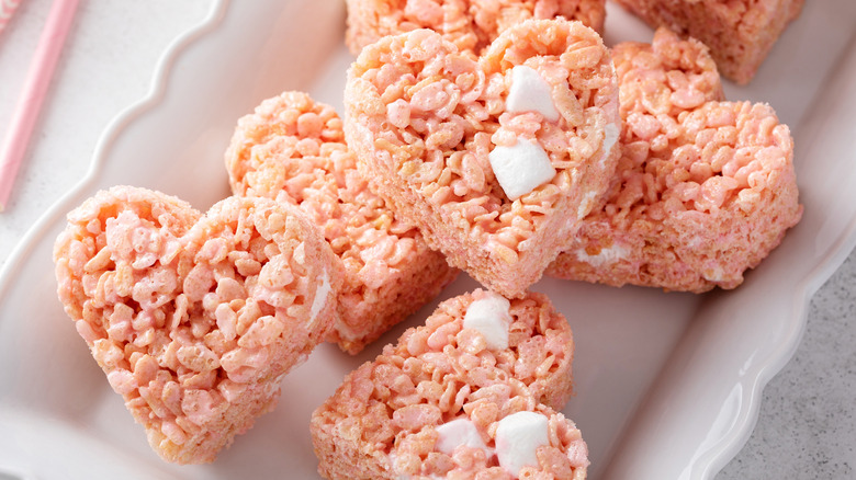 There are few foods that conjure up childhood wonders like good old-fashioned Rice Krispies treats. As easy to make as melting butter in a pan and stirring in the classic cereal, these simple, perennial favorites appeal to all ages for their sweet gooey crunch and nostalgic vibes. Rice Krispies treats were initially invented by two Kellogg's cereal recipe testers all the way back in 1939 as a way to get people eating more Rice Krispies cereal. As the story goes, a chapter of Camp Fire Girls, an American outdoor leadership program, was looking for a fundraiser idea. They tried selling the new homemade Rice Krispies treats door to door and they were a huge success. So much so that starting in 1941, the recipe for the treats was printed on the side of Rice Krispies cereal boxes — just as it still is today.