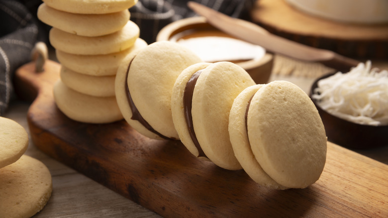 I used to work in an upscale Argentinian restaurant as a pastry cook, and my team was responsible for making the complementary cookies servers would present to every diner at the end of the meal. That cookie? An adorable mini alfajor. Popular throughout South America and Latin America, alfajores are small treats made in a sandwich style, typically with dulce de leche spread between two incredibly tender cookies. If that description alone doesn't convince you to seek one out immediately, it's on the list of the international cookies everyone needs, according to Christina Tosi.