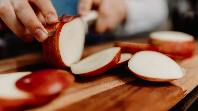 Choose your favorite variety of apple like sour Granny Smith or sweet Fuji. As long as it is fresh and crisp, you'll make an enjoyably fit and light dessert. If you want to stop your apple slices from turning brown too quickly, the best method is to soak the cut slices in an ascorbic acid solution. Lemon juice can be used as a more readily available ingredient, but it won't be as effective.