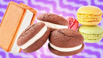 The ice cream can range from simple classics like vanilla or chocolate to kookier Salt-&-Straw-inspired flavor combos. But the real fun, in my sugar-crazed opinion, is what you can choose for the outside, rather than the inside, of an ice cream sandwich. Cakes, brownies, cookies, edible cookie dough, macaroons, macarons, croissants, doughnuts, meringue cookies, Rice Krispies treats, muffins, zucchini bread, banana bread, French toast, cinnamon rolls, eclairs, brioche, waffles, pancakes ... if you can think it, you can make it into an ice cream sandwich. But don't go too wildly off the rails; before you make a mess of melted custard, be sure to review our tips for assembling your ice cream sandwiches for the cleanest possible end result.