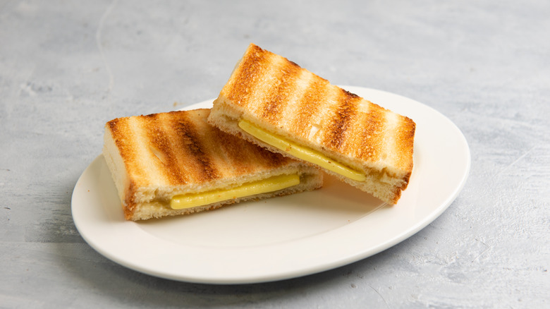 The sandwich is most often served while the butter is still cold. To maintain the butter slices in their slab format and to prevent them from excessively melting, it's best to avoid griddling the sandwich whole when it's fully assembled. The best technique would be to first pre-portion the butter and keep it chilled as you toast the bread slices separately. Once the toast is ready, you can then assemble the sandwich with the prepped ingredients.