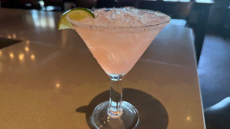This marg just missed the mark, from the type of tequila to the artificial flavoring. Chili's uses a variety of alcohols across its margarita menu — Casamigos, Espolòn Reposado, Jose Cuervo, Hennessy, Lunazul, and plenty of Patrón. While the use of Patrón in the margarita wasn't the only reason it placed last, it sure didn't help.