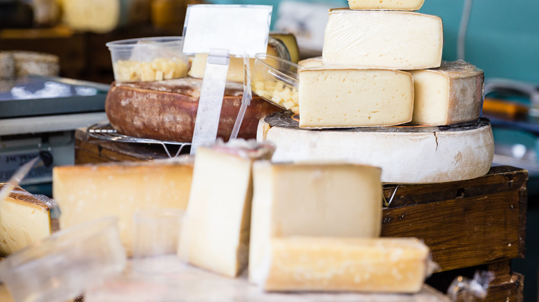 Rennet is a common ingredient when producing cheese; it's a set of enzymes derived from animal stomachs, usually calves, lambs, and kids. Unfortunately, the animals must still be milk-fed to have the right enzyme, mostly chymosin, present. Rennet is used to coagulate milk solids and separate them from liquids, which helps solidify cheeses. While pork-derived rennet isn't nearly as common, it is still used in some cases. Pecorino, Parmesan, Manchego, Gorgonzola, Havarti, Jarlsberg, Gruyère, Gouda — many of these cheeses are made with some form of rennet, though it is difficult to know which use pork rennet specifically.
