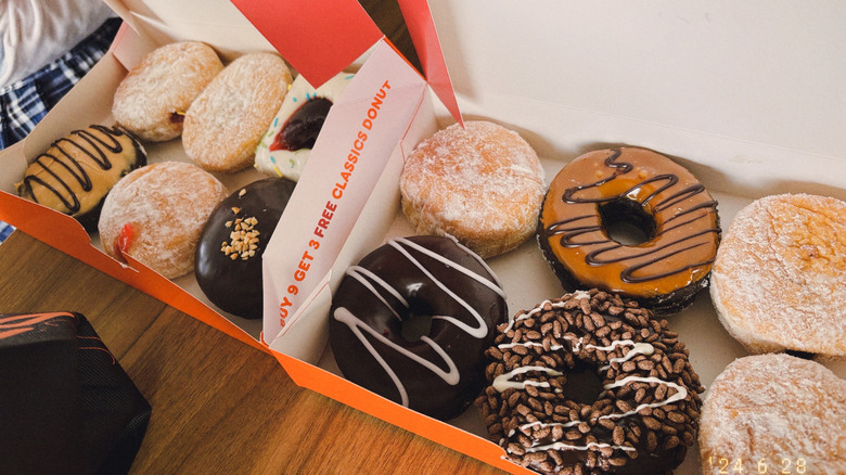 Of the thousands of branded products that contain this additive, one notable example is Dunkin'. Most of the chain's chocolate donut products — Chocolate Butternut Donut, Double Chocolate Donut, Glazed Chocolate Donut, Glazed Chocolate Stick, Chocolate Coconut Donut, and Chocolate Munchkins — contain an "L-cysteine blend." So does Goya's frozen dough, as well as several prepared apple pies. Perhaps less surprisingly, a large number of frozen pie crusts and shells from Safeway, Meijer, Publix, Hy-Vee, and Walmart also contain lard.