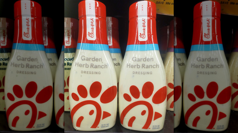 A number of salad dressings contain gelatin, likely used to impart a thicker texture, including Chick-fil-A's Garden Herb Ranch Dressing, Trader Joe's Elote Salad Kit dressing, and many Ken's options. Additionally, many creamy and cheesy dressings, like blue cheese, ranch, yogurt, and some Caesars contain gelatin. We even found a "Waterfront Bistro Seafood Salad Southwestern Style" with a creamy, spicy Southwestern-style dressing that contains gelatin, which probably isn't the first ingredient that comes to mind when reading the label.