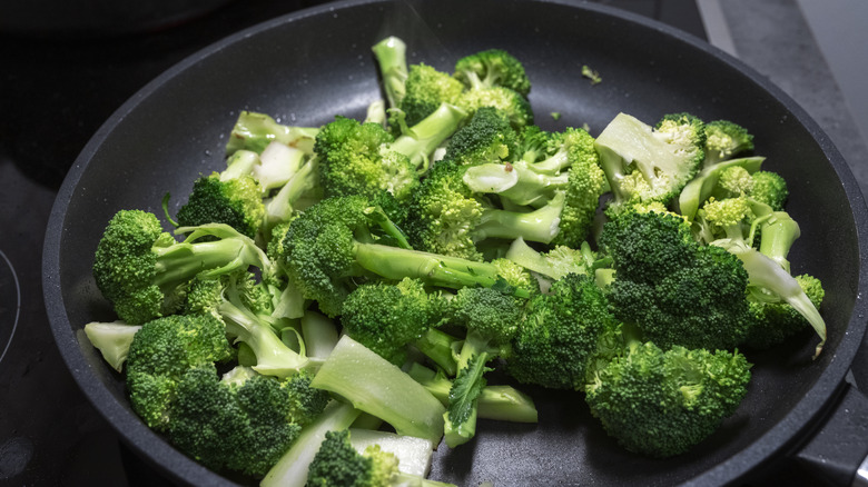 Typically, vegetables are boiled in a large amount of water — around 1 gallon per pound. The logic behind this is that if the pot of water is too small, its temperature will plummet when the cold vegetable is dropped in, meaning it won't cook as quickly. However, some evidence suggests there's actually no quality difference in veg boiled in large amounts versus small amounts of water. Either way, make sure you've added a seriously generous dose of salt to the bowl, which seasons the vegetable, secures nutrients, and draws out the vegetables' natural salts. Follow these pro tips and you'll be sure to end up with crisp, crunchy vegetables.