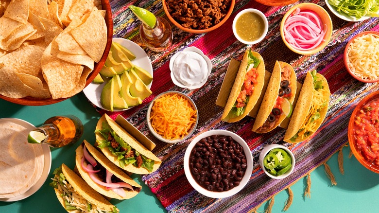 A good taco bar is, of course, determined by the quality and combination of what's on the table. For his take, Bobby Flay said he puts out a spread of spiced seafood, salsas, relishes, slaw, and tortillas. If you're planning on using seafood, too, you'll probably want to go with the type of tortilla that's best for fish tacos. You can also make surprisingly good tacos using canned tuna as long as it's prepared properly.