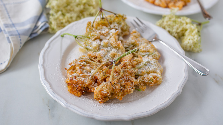 It's a simple recipe, but be sure to avoid simple mistakes for the best outcome. For example, the batter should be the right texture to cling to the flower without weighing it down, and the oil should be hot enough to crisp them up quickly. If the oil is too cold, the resulting fried flowers will end up soggy. Once fried, serve them immediately (with a little powdered sugar, honey, lemon zest, or ice cream if you're feeling fancy). And if you're in the market for new elderflower recipes, they are fantastic in drinks too — in fact, Gordon Ramsay's favorite cocktail is an elderflower and tequila concoction with a pretty harsh name.