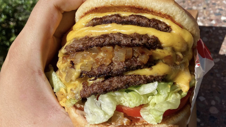 Technically it's one of the secret menu burgers you can order at In-N-Out, but In-N-Out's secret menu is actually referred to as its "not-so-secret menu." It even has its own section on the In-N-Out website, though not all not-so-secret items are listed (just the most popular ones, which includes the 4x4). In reality, In-N-Out's secret menu is quite expansive, for better or worse – though, the 4x4 isn't the best or the worst. It is simply the biggest and tallest option you have.