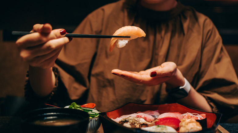 Ordering food at a restaurant, especially if you're trying a new cuisine for the first time, is the kind of thing that sounds simple in theory but can trip you up in the moment. How should you navigate a menu full of words you don't know or cultural expectations you're unaware of, and still avoid ordering the totally wrong dish for you? When it comes to sushi, maybe you're familiar with a few classic maki rolls, but have yet to dive any deeper and feel a bit lost at sea. Though learning to eat sushi like a pro requires some practice, a few morsels of insider knowledge can help demystify the ordering process and have you dining like an expert in no time.