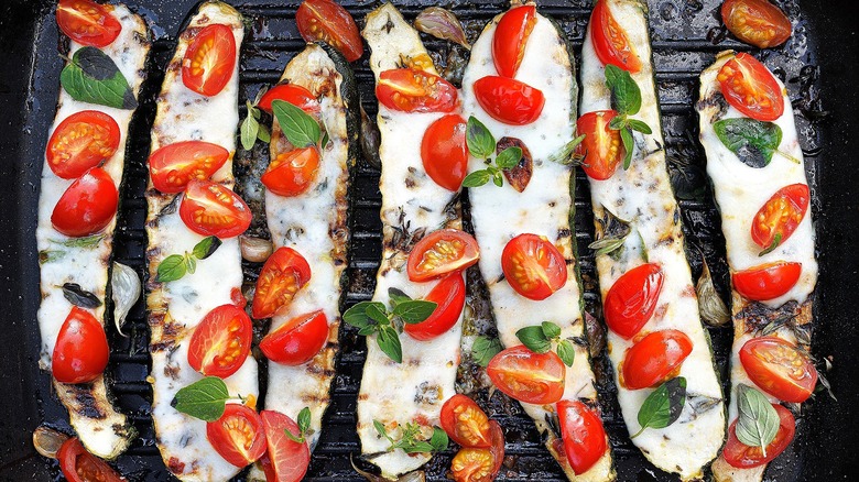 Once you successfully master this grilling technique, feel free to upgrade zucchini with more unique ingredients. Next time, before cooking, scrape out the inner seeds of each half and, once on the grill, fill each portion with ingredients like melted mozzarella cheese, chopped tomatoes, and fresh basil. Or, for a heartier alternative, use fully-cooked ground beef, salsa, and shredded cheese. With grilled zucchini, the options are endless.