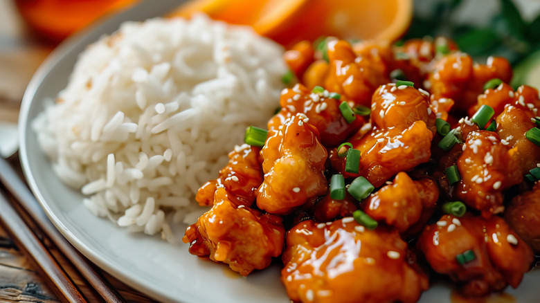 Chef Andy Kao, who is originally from Taiwan, is credited with creating orange chicken, but it's likely that the dish's origins came from the more traditional Hunan chicken citrus peel dish, which is much less sweet. Similar to other Americanized Chinese dishes, orange chicken has had its fair share of detractors, but it also has its defenders who have described it as as just another type of Chinese cooking no less authentic than mainland dishes. In fact, orange chicken has become a standard at many Chinese restaurants. Panda Express alone sells more than 115 million pounds of orange chicken every year and it's such a hit that the chain created a vegan version, as well.