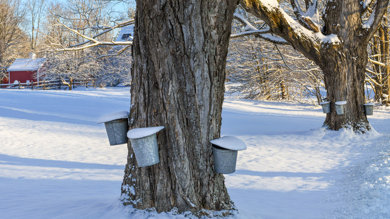 Maple syrup is one of those rare ingredients that truly deserves the description "versatile." It is a must for a pancake breakfast, goes great with chicken and waffles, and even finds its way into cocktails like a winter woodsy-themed espresso martini. This sweet, sticky stuff is produced by countries around the world from America to Egypt, some of which may surprise you once you learn that maple trees need temperatures that fluctuate between freezing at night and thawing during the day to produce significant amounts of it. With that in mind, you probably won't be surprised to learn that Canada, known for its cold winters, is the world's largest producer of the stuff often referred to as "liquid gold."