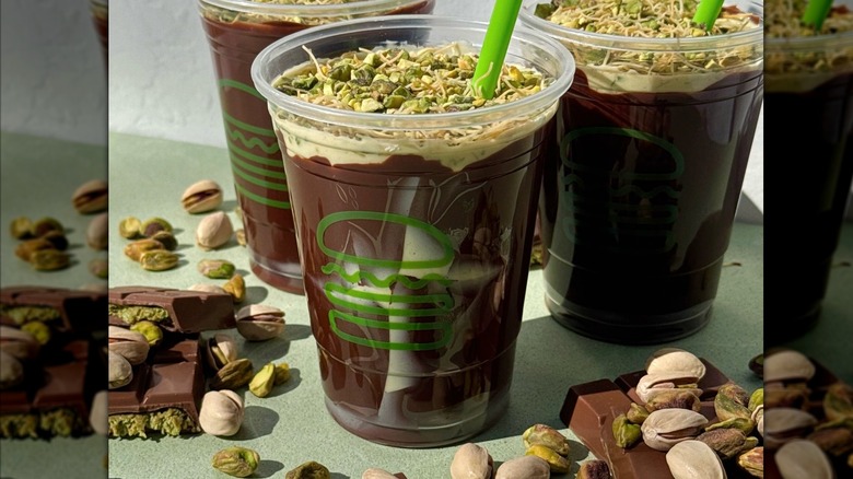 After its limited-edition Dubai Chocolate Pistachio Shake sold out in New York, Los Angeles, and Miami in January 2025, Shake Shack launched it nationwide a few months later. Based on Chowhound's review of the dessert, the blend of pistachio frozen custard and toasted kataifi coated in a crackable dark chocolate shell, sprinkled with chopped pistachios and more kataifi, tastes even better than it sounds. The shake is available until it sells out.