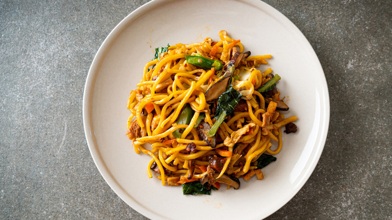 The noodles are vegetarian, but you can also add protein like eggs, grilled chicken, beef, or tofu to round out your quick meal.