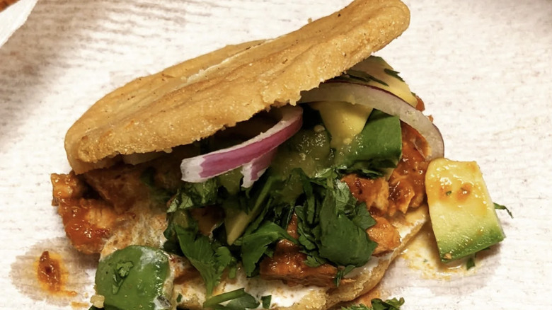 The tortilla, typically thicker than average, is slit open while still warm and stuffed with beans before being lightly fried. It's then topped with a bright array of ingredients: Crunchy cabbage or lettuce, pickled red onions, avocado slices, and either shredded chicken or cochinita pibil, a deeply seasoned, pit-roasted pork marinated in achiote paste and sour orange juice. The vibrant red hue and smoky-sour flavor of the meat are unmistakable and emblematic of Yucatecan cuisine's unique blend of Mayan and colonial influences.