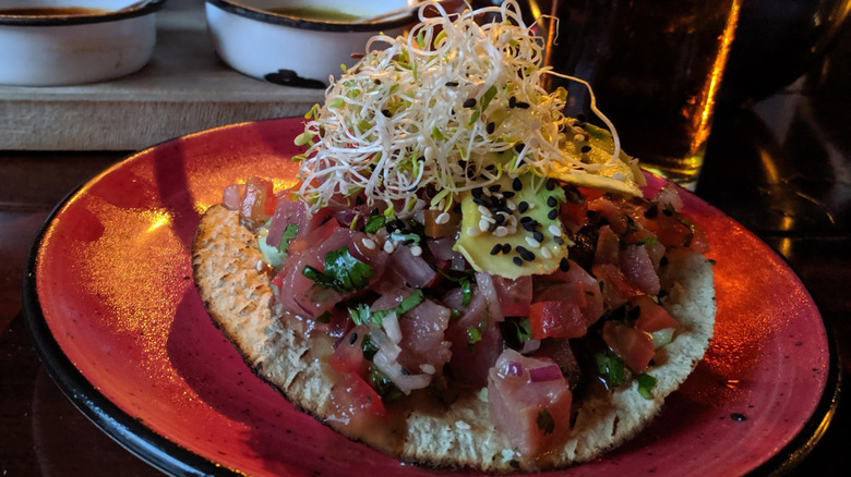 The tostada itself adds an audible crunch that balances the acidity and softness of the ceviche, turning this dish into a texture-lover's dream. Vendors will often offer a range of hot sauces and salsas to allow customers to tailor the spice to their liking, enhancing the interplay between sweet, tangy, and savory flavors. Ceviche is safest to eat when it's fresh and kept cool, which is why it's commonly sold at street stalls in the morning — be prepared to eat some tuna for breakfast if you're on the Pacific coast!