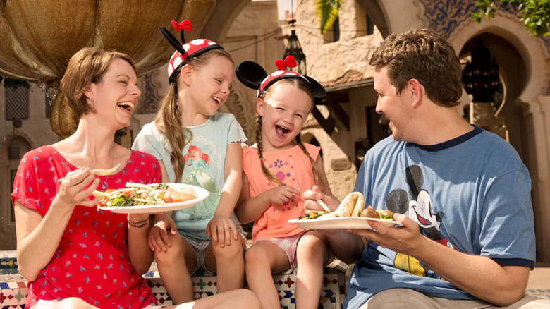 Regardless of the days in question, if you spent the money on dining credits, you're going to want to savor every penny's worth of that hard-earned cash. To do so, there are a few insider tips and tricks to get the most bites for your buck. The most obvious is to avoid two-credit meals. Unfortunately, some of Disney's most beloved dining spots, including Be Our Guest, character dining locales, fine dining restaurants, and dinner shows all require double the credits you'd spend elsewhere. On the flip side, if you have last-minute credits you don't want to lose on your final day of the trip, it's a great way to splurge guiltlessly.