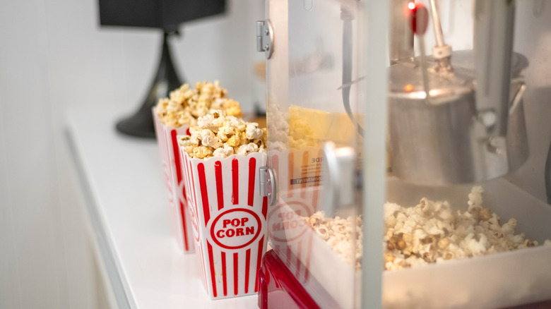 For popcorn made in bulk, like in movie theaters, oils with high smoke points (like canola or coconut) with added butter flavoring are particularly preferred because you still get the buttery notes and mouthfeel without running the risk of having a burnt flavor lingering in the mix. Furthermore, even the yellow, buttery salt seasoning called Flavacol — a concession staple for several movie theaters and the ingredient responsible for making movie theater popcorn superior — is free from any animal-derived ingredients. Many mainstream cinemas offer vegan-friendly popcorn with a dairy-free buttery topping. Still, word to the wise: Always check with the staff, as the ingredients may vary based on the location and their respective product suppliers.