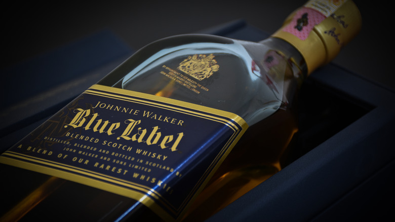 Blue Label, on the other hand, doesn't explicitly list what goes into its blend; there aren't even any whiskey age statements on the bottle to tell you its components ages. What we do know is that the blend can include rare "ghost whiskies," or whiskies that are no longer in production. In an interview with L'Officiel, Johnnie Walker's master blender, Emma Walker, mentions using Port Ellen, Brora, and Pittyvaich, among others. Pittyvaich, in particular, is one of those ghosts, having been discontinued in 1993 after only 18 years of operation.