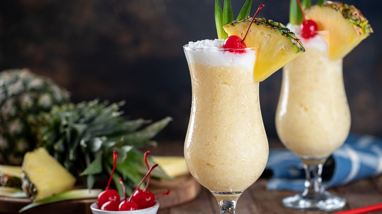 Notably, a classic like the piña colada is one of many frozen crowd pleasers, so you won't be going wrong anytime soon with this slush-ified cocktail option. Additionally, the ingredients are fresh and offer a bright milkshake-adjacent addition to your summer drinks rotation. All you'll need is pineapple juice, lime juice, coconut milk or cream (or both), rum (or liquor of choice), and sugar to taste.
