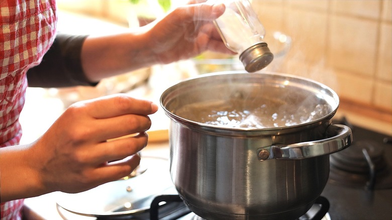 The salt permeates each potato piece inside and out, which guarantees more substantial flavor throughout your recipe and not just on the surface from added spices. Whether you're boiling your potatoes whole or diced, to determine their level of doneness, Shilling states, "I use the tip of a knife or a thermometer, I want to feel it slide through with no resistance."