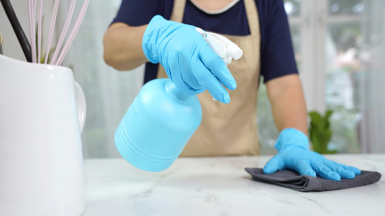 Last among the issues marble countertops can encounter is the need for a specialized approach to cleaning agents. "Due to marble's inclination to etching and staining, you'll want to use cleaning agents that are specifically formulated for marble," Thomas Borcherding says. Check the bottle and ensure that it says it's safe for marble, because regular cleaning agents may be too abrasive or have the wrong pH (it should be neutral). Note that the cleanser won't always have "marble" in the name. Products such as Weiman Disinfectant Granite Daily Clean & Shine can work on sealed marble. If you're worried about mucking it up, stick with a simple solution of dish soap and water.