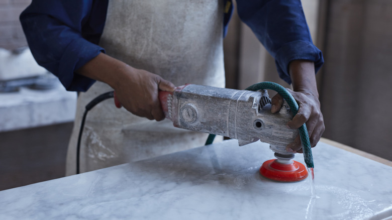The chance of something going wrong is especially high with white or light marble, Rachel Blindauer says. If that's what you've got, you should technically get a professional stone technician for your annual seal-and-polish, too. "[These experts] ensure protection and shine without over-grinding the surface," Blindauer explains. While this might pose a higher upfront cost, Mubeen Patel says, "Pros bring the right tools and knowledge — [after all], it's still cheaper than replacing the slab."