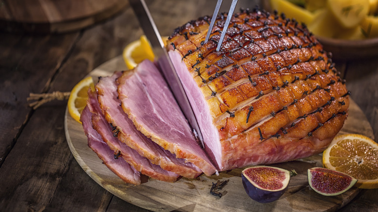 Though it may seem counterintuitive at first, one of the handful of tips you need when cooking ham is to skip the marinade. Whether of the water-cured city variety or salt-cured country style, most hams are soaked in brine as part of the curing process, which is basically a saltwater marinade. This process locks in plenty of flavor and moisture, pretty much guaranteeing your ham will be succulently tasty no matter how you decide to season or cook it.
