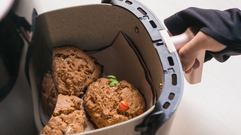 Whether you are using store-bought cookie dough or making it from scratch, baking cookies in the air fryer at 300 degrees F for about five or six minutes should get the job done. You'll want to line the basket with parchment paper first, but it couldn't be easier. It won't heat up your kitchen like the oven, either. It'll take several rounds to make a full batch of cookies in your air fryer, but if you aren't looking to make more than a few, there really is no better way to accomplish the task.
