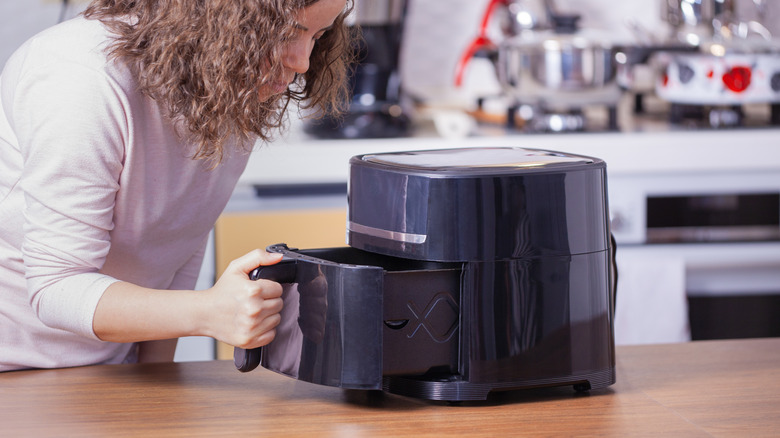 There are multiple reasons why you might, on occasion, notice smoke coming from your air fryer. Maybe a piece of food has fallen through the basket into the drip pan, or maybe you've just got too many items in the basket and the appliance is struggling to keep up. Either way, you're more likely to see smoke coming from your air fryer if the foods you're cooking are on the greasy side, like burgers or even bacon. And while even a small plume of smoke can be alarming, there is an easy solution to prevent your air fryer from smoking due to greasy foods.