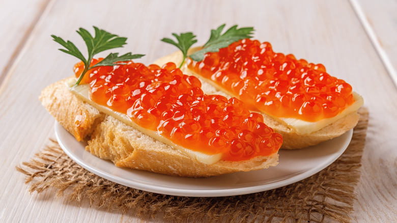 Caviar sounds like an indulgent ingredient, but it appears often on top of simple sandwiches in Russia. Butter, mayo, or crème fraîche add a little creaminess to the salty roe.