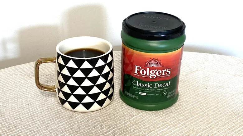 Folgers has an impressive 175-year legacy and has become a staple in many homes across the nation, but perhaps its decaf coffee hasn't quite reached the levels of excellence that the beloved brand's caffeinated ground coffee has. A few decaf coffee drinkers mentioned that Folgers Classic Decaf coffee tastes similarly to caffeinated coffee blends. Some even claimed that the brewed aroma fools their family members into believing that they're drinking a stronger coffee than decaf.