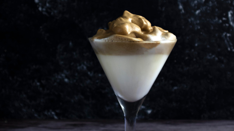 Dalgona coffee, the whipped drink that gained viral popularity, is more than just a social media trend. This fluffy, cloud-like foam also serves as a striking and delicious topper for an espresso martini. Its rich foam texture makes it an ideal addition to elevate both the look and taste of the cocktail.