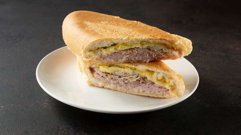 Puck went on to write about how simple it is to make a Cuban sandwich at home, as you can easily customize your lunch with the ingredients you have on hand — just so long as you achieve the iconic tangy notes by including sliced dill pickles and yellow ballpark-style mustard. He also says that it's important give your panini grill a helping hand by placing something heavy — big cans or even bricks — on top of it to create a super-pressed, thin-and-crispy effect. Be sure to evenly distribute the pressure so you end up with a consistent crispiness throughout your Cuban.