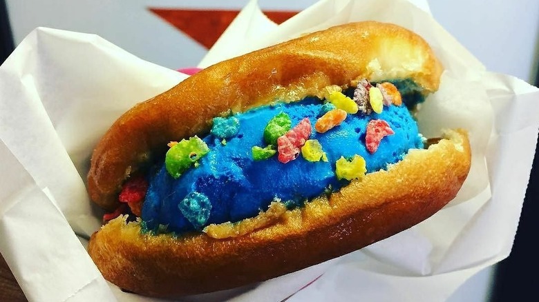 Meet Novel Ice Cream, a beloved spot in Phoenix, Arizona. While ice cream is definitely the name of the game here, this shop rose to prominence thanks to a unique item known as the Dough Melt. This famous sweet features ice cream of your choice stuffed into a freshly made glazed donut, and it's the very reason that this eatery has taken first place for best donut shops in the country on Yelp.