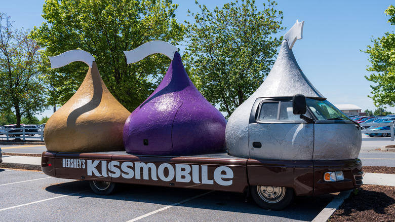 Think about it: There's nothing particularly reminiscent of kissing or puckered lips in their design, yet the name still seems oddly fitting. So how, exactly, did this branding come to be? According to the Hershey Company's official statement on the Hersheyland FAQ page, no one exactly knows for sure, but there are a few likely possibilities. One popular theory is that the machine that produces the chocolates makes a "kissing" sound as the nozzle drops the chocolate onto the conveyor belt. Another possible answer lies in the fact that the term "kiss" was common parlance for a small, bite-size piece of candy. Before Hershey started manufacturing its chocolate Kisses in 1907, there were already candy brands using the term, including Miller's Violet Kisses and Blue Bell Kisses. The Hershey Company simply had the foresight to trademark the term for its small chocolate candy.
