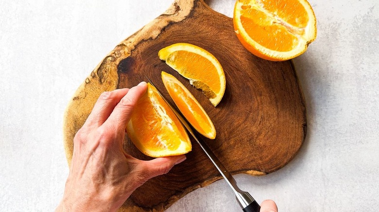 Step 1: Cut an orange slice for garnish