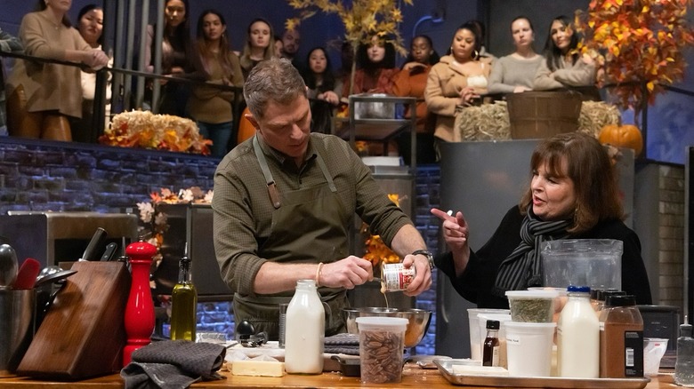 In a particularly moving part of the episode (via Facebook), Garten was brought to tears as Flay described how he got his unexpected start in the culinary world. Flay said that he was kicked out of high school, and his father told him he needed to get a job. He began filling in as a busboy at Joe Allen, an uber-famous restaurant in New York City. "I was literally walking out of the front door, and the chef said to me, 'Hey Bobby, do you want a job in the kitchen?'" As Flay recalled the story to Garten, she fanned her eyes in amazement at what the chef unknowingly did for Flay in that moment, opening up the door to a decades-long career.