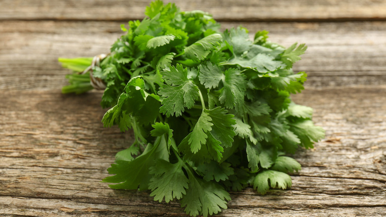 Herbs start wilting once they're cut from the plant. This is because they're separated from their water and nutrient source — the root. And without one, they can't absorb necessary moisture or minerals. However, once placed in a glass of water, they rehydrate and can stay fresh for up to three more weeks. So instead of washing them right after bringing them home from the store, which can lead to excess moisture and quicker spoilage, hold off on rinsing. Simply place your herbs in a glass or a jar filled with about an inch of water to preserve their freshness.