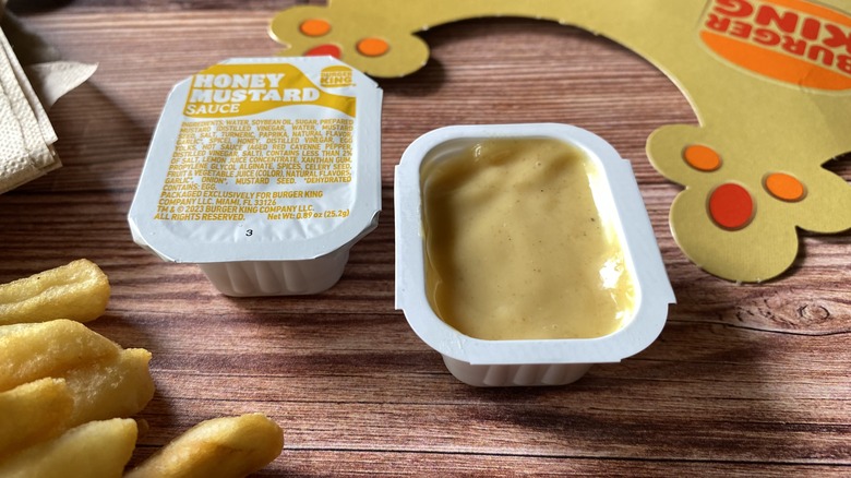 With dual action from both prepared mustard and mustard seed, as well as some hot sauce in the mix, Burger King's honey mustard sauce had just the right amount of a mischievous pungency. But you don't need to worry about mustard being the melodramatic prima donna trying to hog all the spotlight. For those (and there are many) who don't like straight-up mustard ruining their french fries, nuggets, or burgers, this sauce is your solution. The mustard component did not engulf the other ingredients; overall, this was a well-balanced sauce with no ingredient competing with the other.