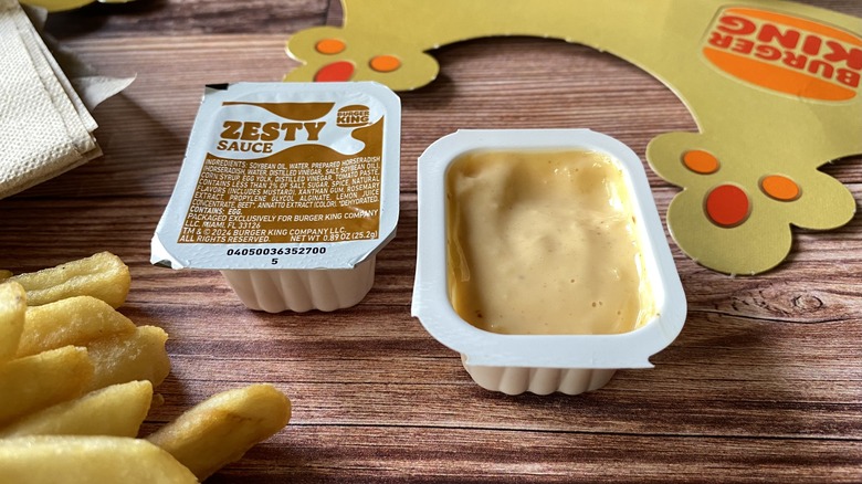 It's zippy and zingy, bold and bright, fun and fresh — the best dipping sauce from Burger King is the zesty sauce! So, what exactly makes this silky sauce "zesty?" It is an alluring mystery that is part of the original charm. And once I did my research, I discovered that it's a bold wildcard, an unexpected curveball that might cause a divided uproar. It may even be as controversial as the worst scandals in Burger King history. Ready? The secret ingredient is horseradish.