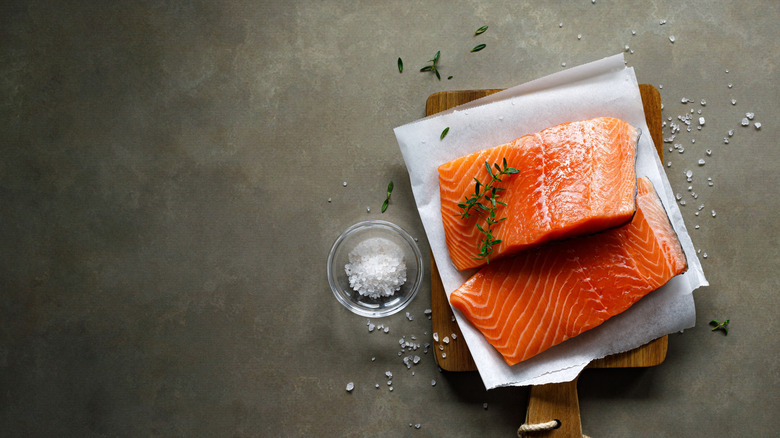Before you stuff your fish, though, you'll have to choose the right cut — it's important to set yourself up for success by balancing flavor, texture, and thickness, and to do that, there are certain factors you should keep in mind. To find out more, Chowhound spoke exclusively to Kory Foltz, the culinary director at Sunseeker Resort in Charlotte Harbor, Florida. "Go for thick, center-cut fillets," he told us. "They're easier to work with and hold stuffing better without falling apart." Heeding this advice is important: If your salmon flakes apart, you'll find yourself with more of a salmon soup than a stuffed salmon. "Skin-off is best for stuffing," Foltz said. "You want something firm and even in thickness so it cooks evenly, and you can get a decent pocket in there without the fish breaking."