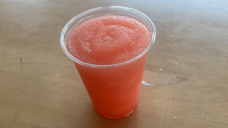 The Minute Maid Strawberry Lemonade Slusher delivers a frosty punch of sweet and tart expected in a strawberry-lemon flavor combo, with a slightly artificial flavor tang in its aftertaste that didn't do it any favors. It can best be described as what you'd imagine an Otter Pop would be like if it were reimagined as a frozen beverage. However, hats off to the texture of the ice granules for being a darn sight better than your typical Otter Pop.