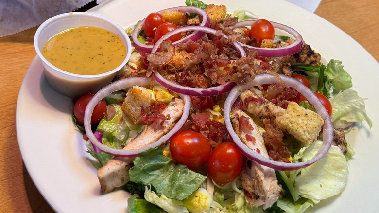 Eating at a chain restaurant usually comes with the expectation of a consistent menu at every location. At Texas Roadhouse, a Louisville, Kentucky-based chain, you get the consistency of a franchise at the nearly 600 different locations worldwide, but you also get the homemade touch of having several items that are guaranteed made from scratch. The chain, which is known for several great menu items like bone-in ribeye steaks and fresh-baked rolls with honey cinnamon butter, prides itself on providing fresh, quality food. And one of the ways it does this is by making its own salad toppings like its croutons, bacon bits, and salad dressing.