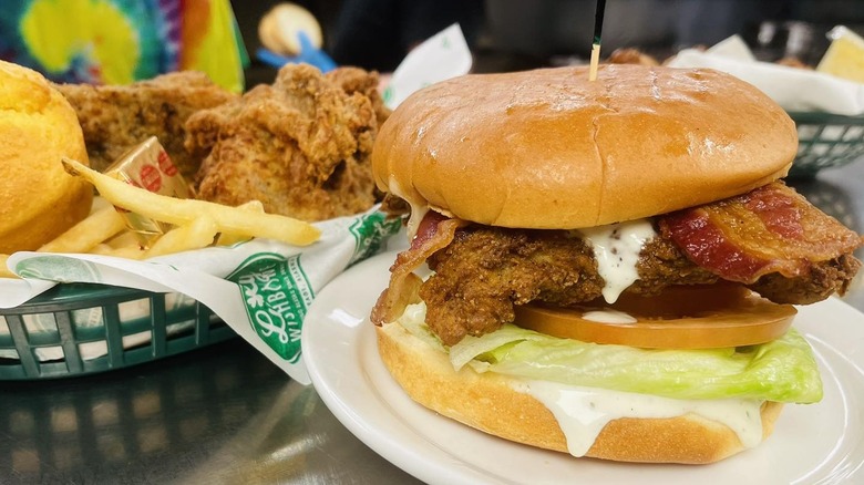 Folks who've been eating at Rooster's are so devoted to its fried chicken sandwich that they're more than happy to forgo KFC, Church's Texas Chicken, and Chick-Fil-A (even if Chick-Fil-A supposedly invented the chicken sandwich) altogether. When your chicken sandwich is being called the best in Jackson and the best diners have had in their entire lives, you know it's special. What makes this sandwich stand out is its simplicity: a spicy, crunchy chicken breast is nestled in a daily freshly made bun and topped with lettuce, onion, a pickle, and a tomato.
